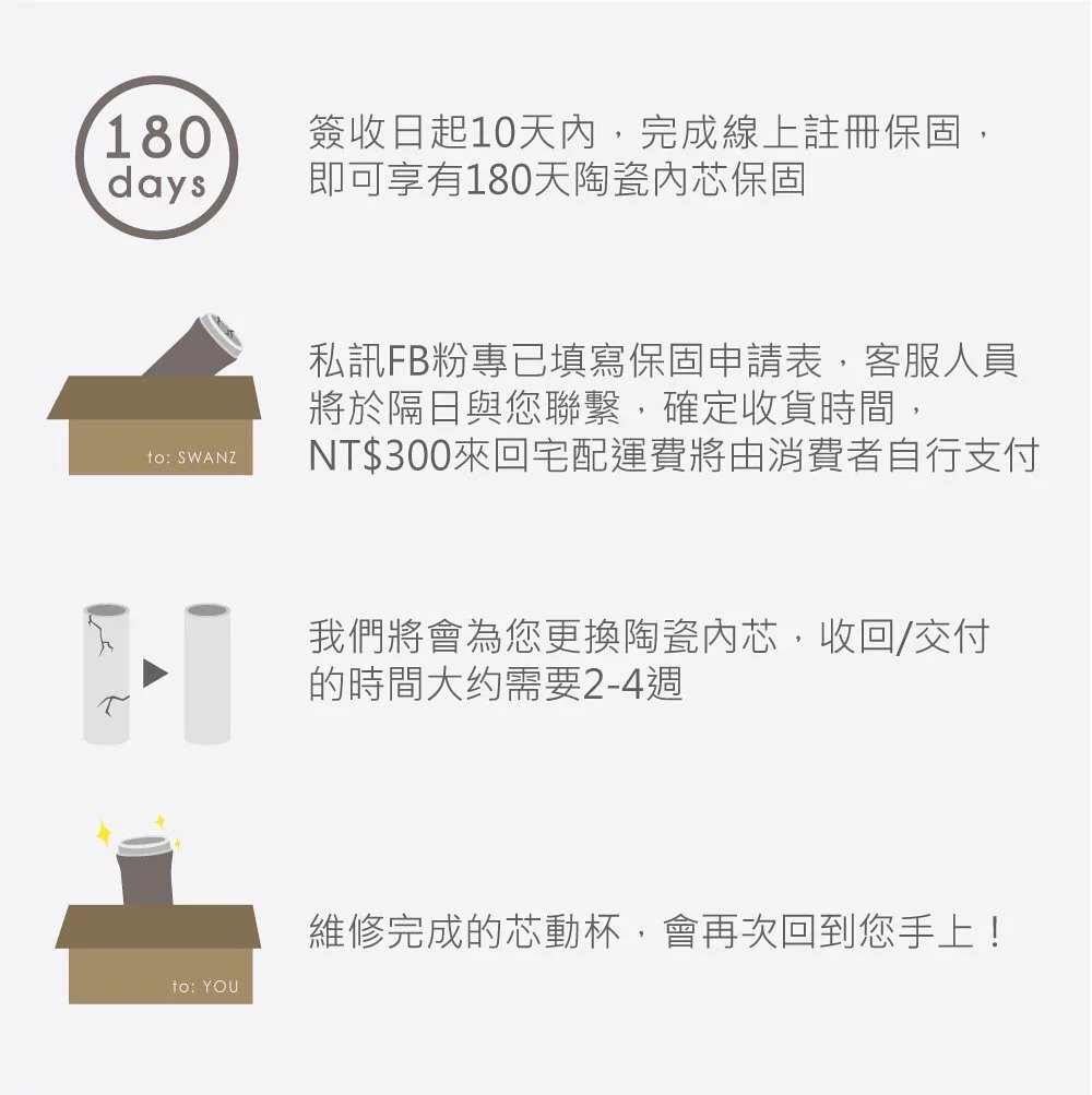 材質:杯身 304 不鏽鋼 / 杯蓋 304 不鏽鋼(SGS 認證)/ 杯蓋 PP、食用級耐熱矽膠 / 內芯 100% 硬白瓷 耐熱:陶瓷內芯 1000°C / 杯蓋矽膠 220°C / PP 杯蓋 120°C