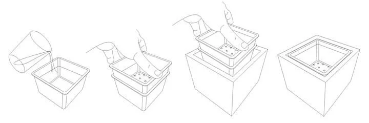 1. 使用極地製冰盒(Polar ice maker),將水倒入白色製冰模型中