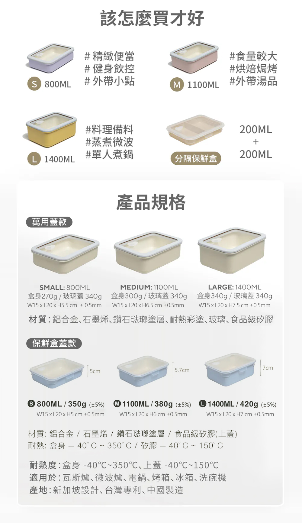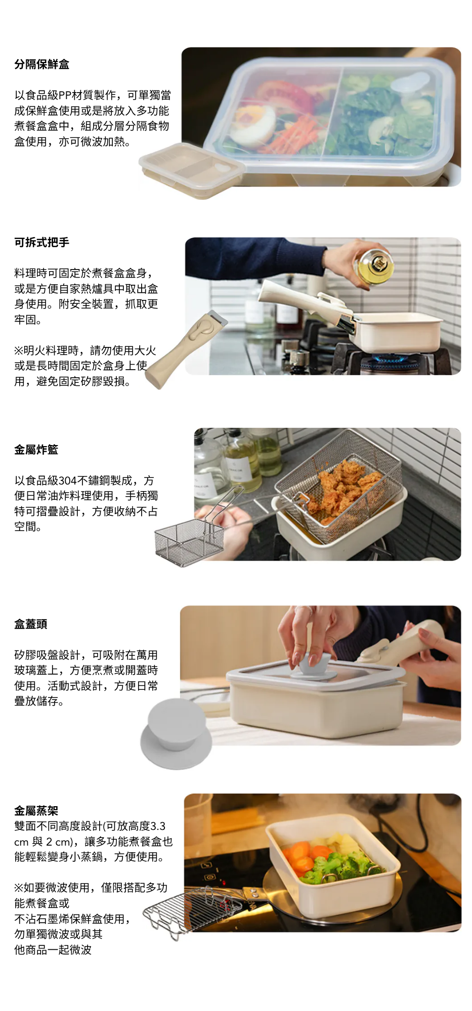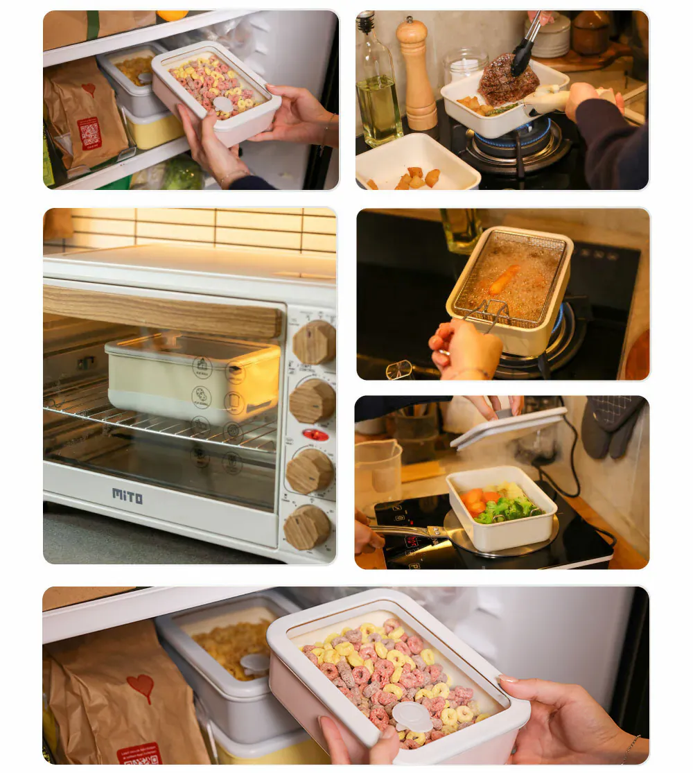 複合多重結構讓多功能煮餐盒使用更多樣化,最內層採用堅固又耐用的鑽石琺瑯塗層,不沾且耐高溫,容易清洗;鋁合金與石墨烯材質結合讓盒身加熱速度較一般不鏽鋼材質快30%;最外層的耐熱彩塗則讓多功能煮餐盒擺脫一般金屬盒冷冰冰的樣貌,更繽紛多彩。